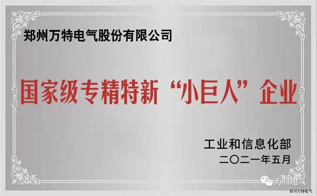 為深入貫徹習近平總書記關于“培育一批專精特新中小企業(yè)”、提升中小企業(yè)創(chuàng)新能力的重要指示批示精神,國家工業(yè)和信息化部開展了第三批專精特新“小巨人”企業(yè)培育工作,現已完成各省級中小企業(yè)主管部門初核和推薦、行業(yè)協(xié)會限定性條件論證、專家審核、公示等程序,鄭州萬特電氣股份有限公司名列在榜,被授予國家級專精特新“小巨人”企業(yè)稱號。