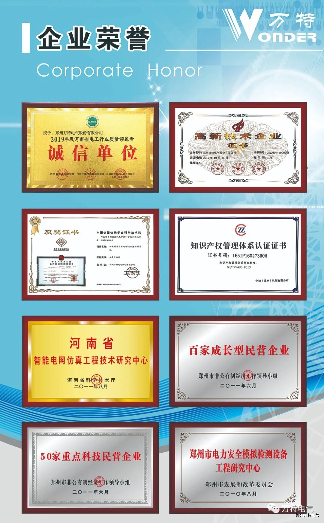 鄭州萬特電氣股份有限公司是一家專注于研發(fā)、生產與銷售電力設備與運維模擬仿真裝置、電力安全體感設備、電力儀器儀表的國家高新技術企業(yè)與電力智能制造企業(yè)。公司電力培訓設備與運維模擬仿真系列產品在國內一直處于領先地位,主要應用于電力行業(yè)各崗位的技能教育、培訓與考核,以優(yōu)質的高科技創(chuàng)新產品為基礎,集中資源發(fā)展核心業(yè)務,提供電力培訓行業(yè)整體系統(tǒng)解決方案。