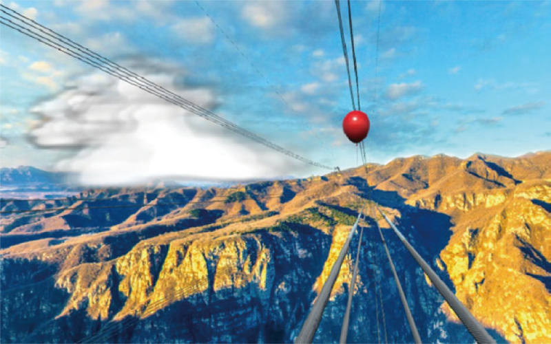 高空線(xiàn)路行走VR 實(shí)訓(xùn)系統(tǒng)是采用虛擬與現(xiàn)實(shí)結(jié)合的方式,在室內(nèi)架設(shè)一段模擬的500kV四分裂線(xiàn)路,借助VR 虛擬現(xiàn)實(shí)技術(shù),營(yíng)造高山峽谷間分裂線(xiàn)路的虛擬場(chǎng)景,真實(shí)感受分裂導(dǎo)線(xiàn)行走過(guò)程及墜落風(fēng)險(xiǎn)后果,訓(xùn)練作 業(yè)安全防護(hù)技能,鍛煉高空作業(yè)心理素質(zhì)。