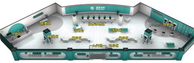 本項目應用VR 虛擬現(xiàn)實技術(shù),開發(fā)互動營業(yè)廳虛擬現(xiàn)實場景應用,可實現(xiàn)業(yè)務辦理、故障報修、咨詢服務、電 費繳納等立體演示功能。